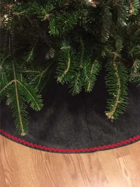 So I guess I am pickier than I thought when it comes to tree skirts. I couldn't find one I liked. So I braved Joann fabrics and for about $10 created one that was super simple and cute.